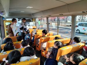 たんぽぽ組は、夏から野菜の収穫で訪れた菅野農園の宮崎さんが出てくる劇を作り、発表会に向けて楽しんでいます。せっかくなら宮崎さんに自分達の劇を観てもらいたい!という子ども達の声から招待状を作成し、菅野農園に出かけることにしました🚌久しぶりに対面した宮崎さんにみんなで「発表会観に来てください!」と伝え、お当番さんが代表して招待状を手渡しました👍「どうもありがとう!楽しみにしています!」と言ってくださり、帰り際も招待状を持って笑顔で見送ってくださいました😊帰りのバスの中でも「嬉しそうだったね~😊」と子ども達からも喜びの声があがりました🎵