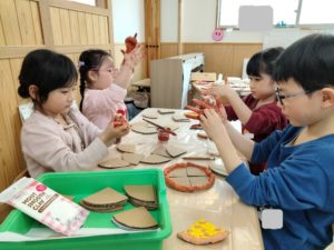 それぞれのコーナーで見通しをもてるよう今日の活動でどこまで進めると明日の完成につながるのかを確認しました。また自分のコーナーで試してみて改善した方がいいことに気づいたり、提供する品物の必要数を考えて準備したり、リアル感を出すためにアイディアを出し合ったり。明日もイメージを共有しながら、自分達のこだわりを折りこんだコーナー作りを楽しんでほしいです。