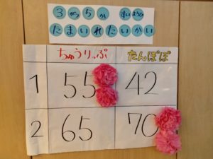 これまで数回にわたってクラスで玉入れをする中で「これ位の力で投げるといいかも」「近すぎてもうまく入らない」「何個かもって投げたら上手くいった」等、実践からの気づきをみんなで共有し、作戦を立ててきました。今日はその作戦をクラスで意識しながら実行し、2回戦目に向けても再度確認していました。クラスみんなで一つの目的を共有し、気持ちを合わせていくという経験を積むことができたように思います✨