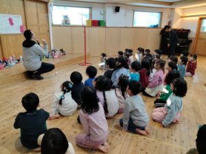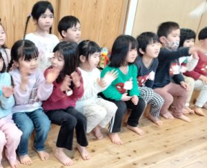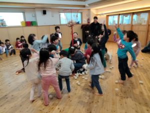 年中組の玉入れ大会でした。みんなの気持ちを合わせようと「エイエイオー!」と気合十分です🎵一回戦目は相手のクラスの応援をしていましたが「たくさん入っている…」とかごの中が見えているからこそ緊張感も出てきたよう💦実際にいくつ入ったか数えていくうちに気持ちがあがったり、落ち込んだりし、一喜一憂😊😭「まだわからないよ」「次も頑張ろう」等と気持ちを込めて2回戦に臨みました👍再度気合を入れて臨み…1回戦目はちゅうりっぷ、2回戦目はたんぽぽが勝ち、結果として引き分けとなりました✨園長先生からどうしたらもっと玉を入れることができるかアドバイスももらいました!