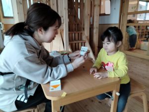 広い園内にはあそび空間がたくさんありますが、居心地の良い場所、やってみたいことがある場所は子どもそれぞれ。好きなもの、興味があるものに触れながら、好きなものがもっと好きになっていけるように…そのためには環境が必要です。意図的に作った環境ですが、子どもが選択した遊びの中で自然と魅力に出会えるのではないでしょうか。幼稚園でワクワクする時間を増やしていけるよう、子ども達の興味関心を探っていきたいと思います。