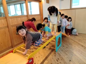 今日も雨が降っていたため、室内で遊びました☔緊張感がほぐれてきた年少さんは、少しずつ遊ぶ範囲を広げます。「先生も来て!」とロフトに誘ったり、廊下で製作をして遊んだり、自分のクラスで楽しそうなことを見つけてやってみたり🎵「ここにいると心地いいな~」と思える場所を見つけて過ごしていました😊年中組も新たなクラスとなりましたが、ホールで思い切り身体を動かしたり、つくルームでイメージしたものを作ったり✂楽しい時間が増えていきそうですね✨