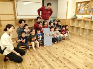 年齢によってそれぞれの意識が違うことが見えた今日の様子。どうして撮影しているのかという理由はまだわからない1歳児は、おそらく成長していった先で「こんなことをしていたんだ」と意味を知っていきます。一方5歳児は、自分達で意識を高め撮影に臨んでいますが、この場面を切り取ると、「今日はお祝いの写真を撮るから、撮り終えるまでここでどう過ごしたらいいか」を自分で考え、行動していることがわかります。生活する中で見通しをもてるようになることがこの行動のベースになっていますね。