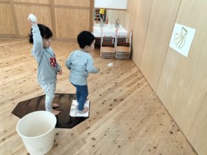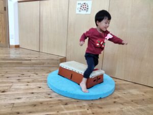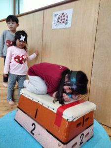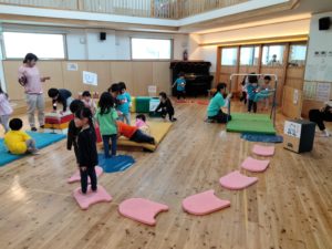 あそびの時間等に静的なあそびを好む子ども達も多くいますが、みんなの時間にサーキットをすることで全員がバランスよく身体を動かせる機会を保障しているのです☺