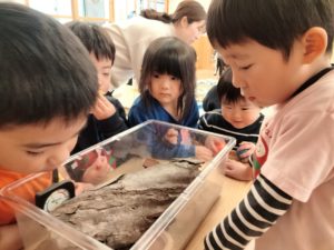 ヘビという名前がついているのにトカゲだという事実に納得していない子もいましたが、実際に触れ合う中で水をペロペロ舐めたり手の平からジャンプしたりする姿をみて愛着が湧いたようです✨