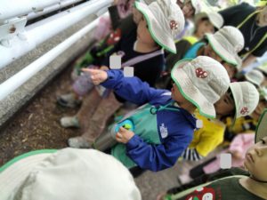 年中組みんなで月寒公園に出かけました🚌昨日から公園内にある花や生き物の写真を見ながら、「こんなのあるかな?」とクラスで話してきました。実際公園についてから歩いていくと、植物やアリなどの虫、カモなどと出会うことができました✨「あ!」と見つけたものを話す時にたくさんの子ども達が心を寄せてじっくり見て、「幼稚園のと違うね」「この花は幼稚園にないね」等、身近な環境にあるものと公園で見つけたものの違いを感じていたようです👍また保育者が準備したカードには「蜘蛛の巣」「鳥の声」といったものが描かれており、上下左右へ五感を研ぎ澄ませながら散策を楽しむことができました😊