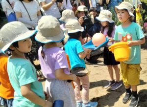 元気いっぱいゆたかっこDAYは、年少や年中で普段の遊びの様子を見ていただきますが、年長のこの行事は「道具や素材を駆使して工夫する」「何度も遊びを繰り返す中で作戦を考え、実践と振り返りをする」「みんなで息をそろえて表現する喜びを感じる」等、当日が楽しい一日なのはもちろんですが、過程の中でクラスのみんなと遊びを進めるという成長を促していきます。どのような成長を見込み、どの遊びを選択するか…年齢ごとにねらいを立て、遊びを計画していますので、今後の保育参観や保育参加でもねらいに着目しながらご覧いただけたらと思います。