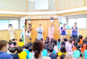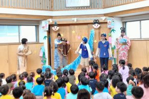 今日は七夕のお楽しみ会をしました🎋先生方の劇では天の川が出てきたり、一年に一度カササギの橋が掛けられ、会えるようになったりしたこと等を伝え、みんなでうたを歌いました🎵劇の後も「出てくる川は何という川か」「なぜ二人が引き裂かれたのかその理由」等、七夕クイズをして盛り上がりました😊給食の時間になり、管理栄養士の先生から本日の給食で子ども達が食べたそうめんについてのお話をしてもらいました。昔、そうめんを食べたことで元気になったことから今日がそうめんの日になったことや、昔のそうめんが「さくべい(索餅)」という小麦粉をねじってあげたものだったこと、さくべい→さくめん→そうめんへと名前が変わっていったことを教えてもらいました!子ども達も手作りのさくべいを触り「パンみたい」「硬い!」「全然違う!」と驚いていました👍