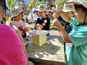 夏の暑さがやわらぎ、季節の移り変わりを感じることができるようになってきました。園でも野菜の収穫を楽しんできましたが、お月見は自然の恵みへの感謝や、来年が豊作であることを願う行事です。その際にススキや月見団子をお供えして月を愛でます。(お芋の収穫を特に感謝することからお芋を供えることも!)季節の行事の準備を子ども達と一緒にしながらその意味に触れたり、興味をもったりしながら文化を大切にすることができたらいいなと思っています。月が見える玄関に飾っていますので、ご来園の際はご覧ください。