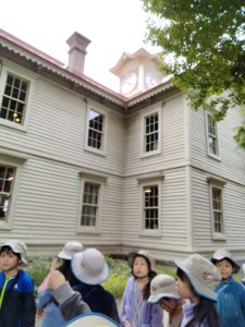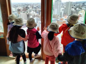 ひまわり組は先週に引き続き、自分達が共同製作で作った札幌の街を実際に目で見ていようと、今日は大通周辺を散策しました!バスで大通りに向かう途中、ファクトリーを通ります🚌「作った丸い屋根!」「サッポロビールって書いてる」と大盛り上がり😊その後時計台へ。製作物を出して見比べると「星が3つついてる」と正面の作りからすぐに違いを発見!少し横にずれて上を見上げると「あ!時計が横にもある!」とそれなら実は裏側も…?と一周してみると4面に時計があり驚きの表情👀さらにテレビ塔まで歩き、展望台に上がり札幌を一望🎵見たことがある建物などを見つけるたびに大興奮でした✨「時計の文字の色、オレンジだったね~」「(園に)帰ったら直さなきゃ!」と話して帰るのでした🚌