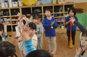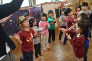 それを見ている子ども達も見様見真似で自然と身体が動き出し、友達と一緒に思い切り表現する心地良さを感じているようです♪♪