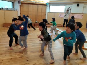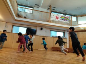 ホールで氷鬼をする子ども達。