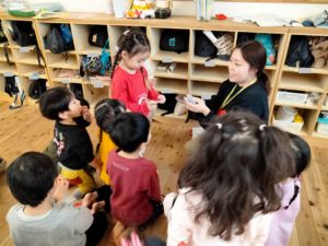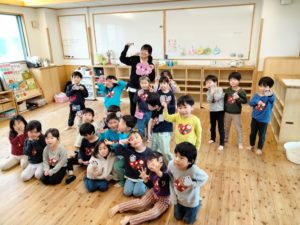 修了日集会で、園長先生から春休みになることや、新しいクラスについてお話していただきました。「〇〇組の先生~!」の声と共に、それぞれのクラスの先生方が出てきて、自分の先生が誰かを知ります。すべてのクラスの発表を終え、新たな担任と一緒に新しい保育室に入ります。一人一人の名前が呼ばれ、新しいバッジが手渡されると、頬が緩み嬉しさが滲んでいました😊また、おやじの会より絵本やマンカラを寄贈していただき、子ども達にも実際に紹介することができました📚ありがとうございます🎵