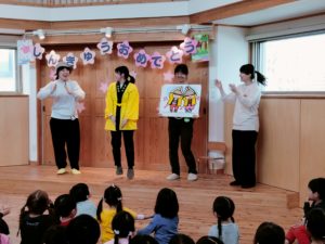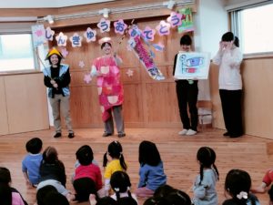 今日から令和8年度が始まりました!久しぶりの登園に少し緊張気味の子、春休み中に来ていてリラックスしている子それぞれでしたが、先生や友達の顔を見てホッとし笑顔もたくさん😊程よい気温の中で園庭で遊んだり、室内でネット遊具や製作遊びを楽しんだりと、自分のやりたいことを見つけていました✨その後、ホールで始業日集会をしました。園長先生から来週 入園式やお祝いする日があることを聞くと、改めて自分達が進級したということを感じていたようです💗劇の中で1学期の行事について紹介があり、ゆたかばやしの曲に合わせて踊ったり、園庭に飾ったこいのぼりを見たりしながら期待も膨らみました👍