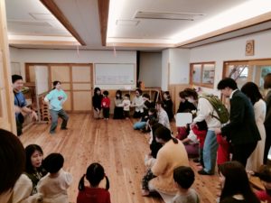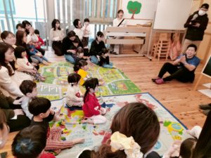 今日は2歳児クラスの子ども達の入園をお祝いしようと、お家の方と一緒に登園していただきました✨3月の登園日に自分のリュックを入れる場所や靴箱を見ていたので、今日もお家の方と一緒に自分のものを始末していました👍ままごとやロフトなど、いろいろな遊びの中から好きなことを見つけて楽しみました😊また、みんなの時間の中で「手をたたきましょう」のうたに合わせて笑ったり、泣いたりしながら手遊びをし、その度に子ども達も真似っこしながら色々な表現をして盛り上がりました!みんなでみんなをお祝いしようと、1人ひとりの名前が呼ばれたら先生のもっているタンバリンをタッチ🎵力いっぱい、優しく、笑顔で、照れながら…様々な表情でタッチする姿が素敵でした💗さらに「ミラクルレンジ」の中に生き物を入れると成長したり、食材を入れて温めるとお祝いのケーキに変身したり…子ども達が目を輝かせながら一緒にその世界に入ってくれ、楽しく終えることができました🍓