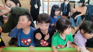うさぎ組は大きなカブを題材に遊びました。絵本に出てくる役の他にもネコ役、スパイダーマン、アリエルも登場し、にぎやかなキャストに👍カブを抜くお手伝いをする際には役のポーズなども考えながら、みんなで「うんとこしょ、どっこいしょ」と元気な声を響かせ、無事にカブを抜くことができました😊抜いたカブを料理して、みんなで食べて楽しみました🍴