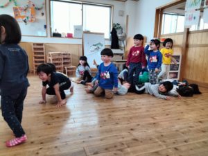 ファンタジーの世界を楽しむことが好きな年少児。動物など登場人物の雰囲気や鳴き声をイメージしながら、役に合わせて表現して楽しみました。感じる、考える、表現するという要素が詰まっており、子ども達の表現の可能性を広げています。「このお話はこうあるべき」という大人の概念を覆す豊かな発想をこれからもたくさん見つけていけたらと思います✨